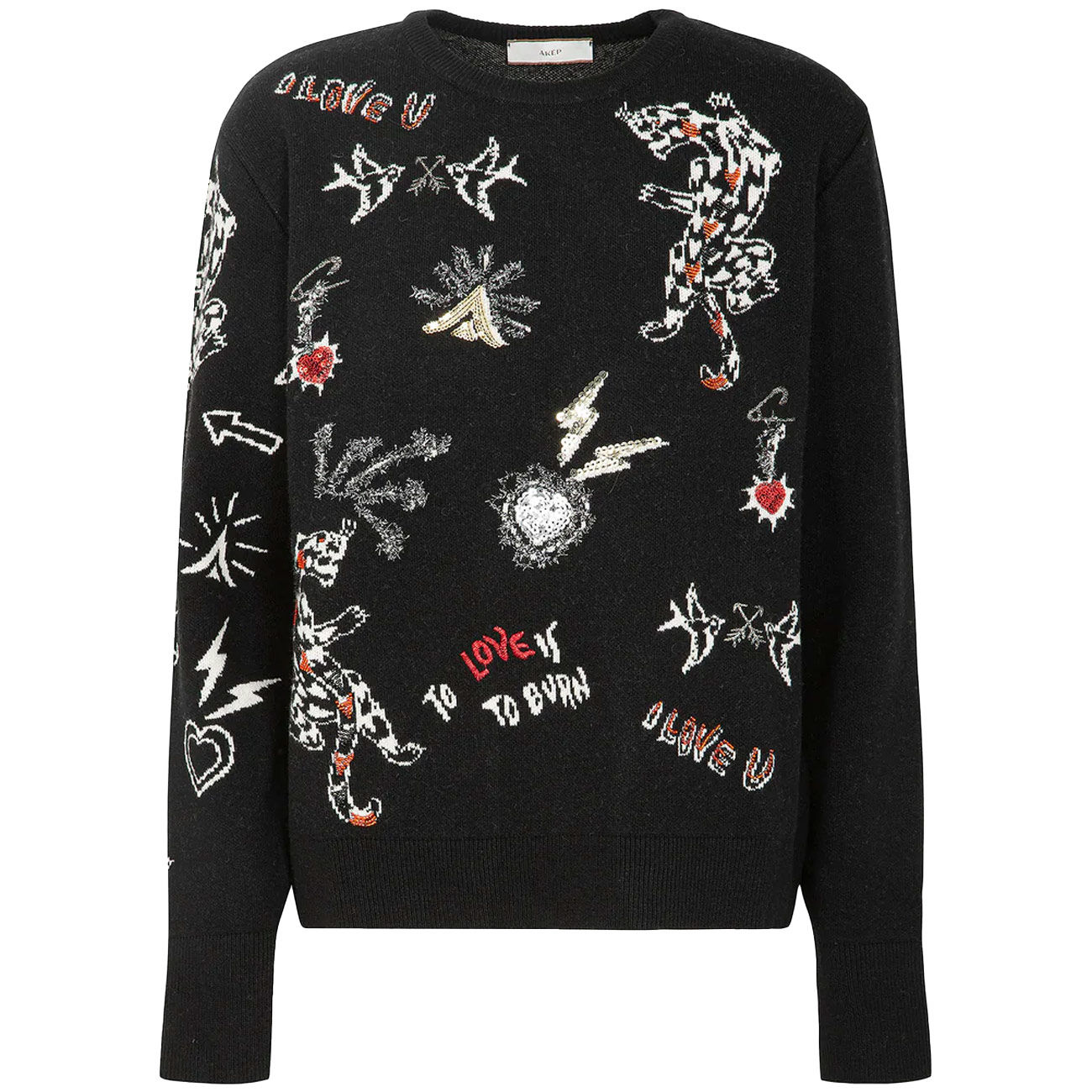 The Akep crewneck sweater embodies essential elegance enhanced with a touch of boldness. The embroidered sequins catch the light with vibrant reflections, giving the piece a luminous rock vibe. The regular fit and minimalist base enhance its versatility, making it perfect for both casual and sophisticated looks. A harmonious balance between refinement and rebellious spirit, designed for those who love to stand out with style. With this creation, Akep celebrates contemporary femininity in a bright and decisive way.