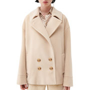 Single-breasted midi coat made of viscose blend. It features straight line, lapel collar, dropped shoulder and side pockets. Detail closure with two buttons.