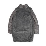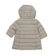 Quilted long down jacket with full zip, hood and lateral pockets. Grey interior.