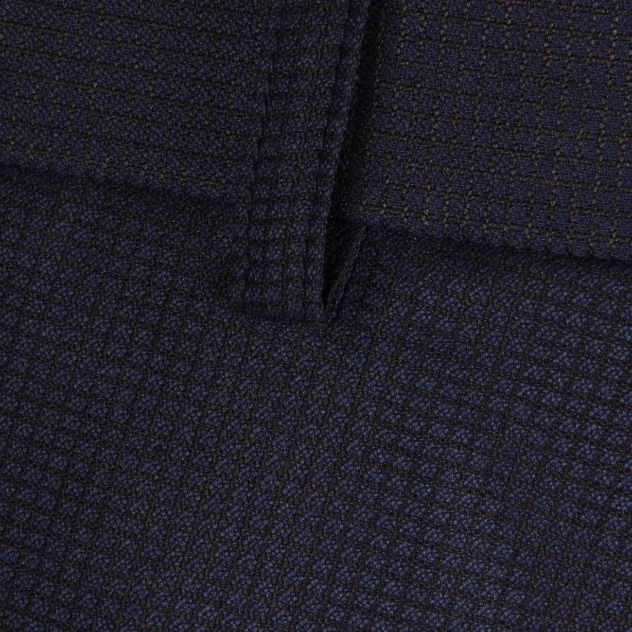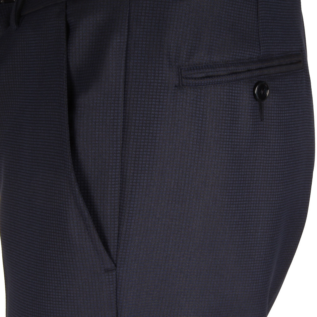 Men’s trousers in polyester blend with central fold. Front pockets with thread and back with thread and button. Belt loops. Zip fly, button and hook.