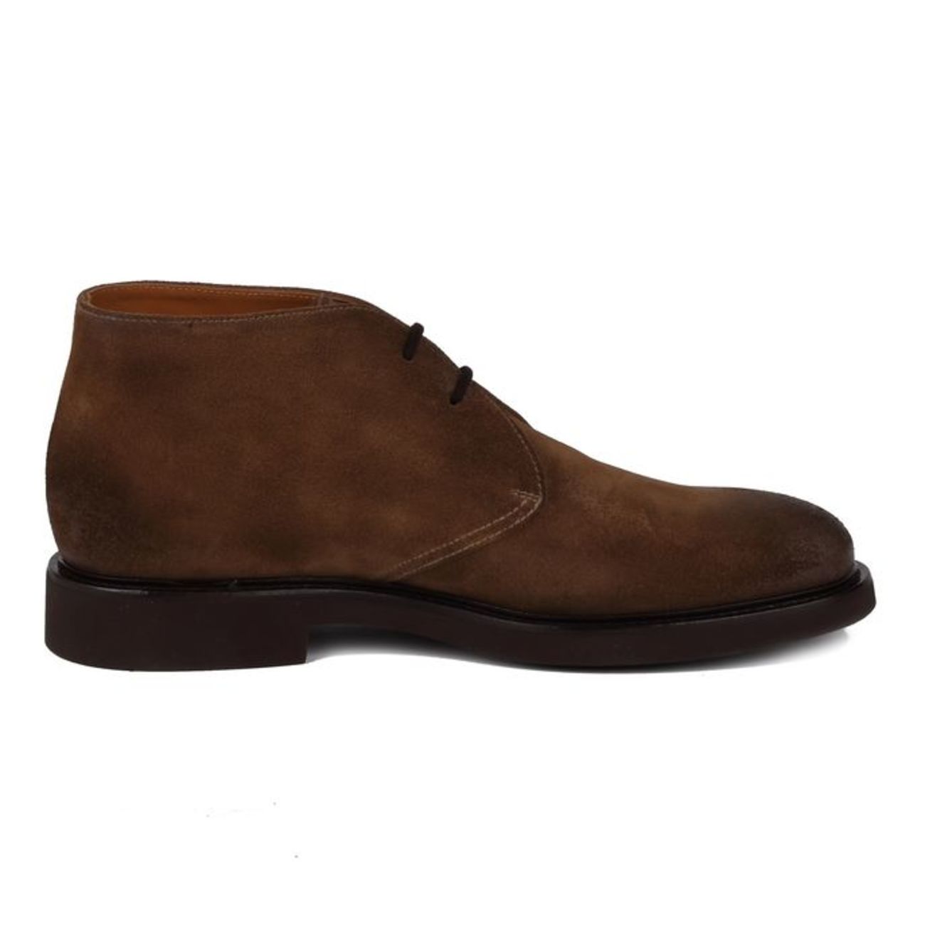 Man's brown lace-up shoes realised in suede and characterized by darkerst sole and tone on tone lace.