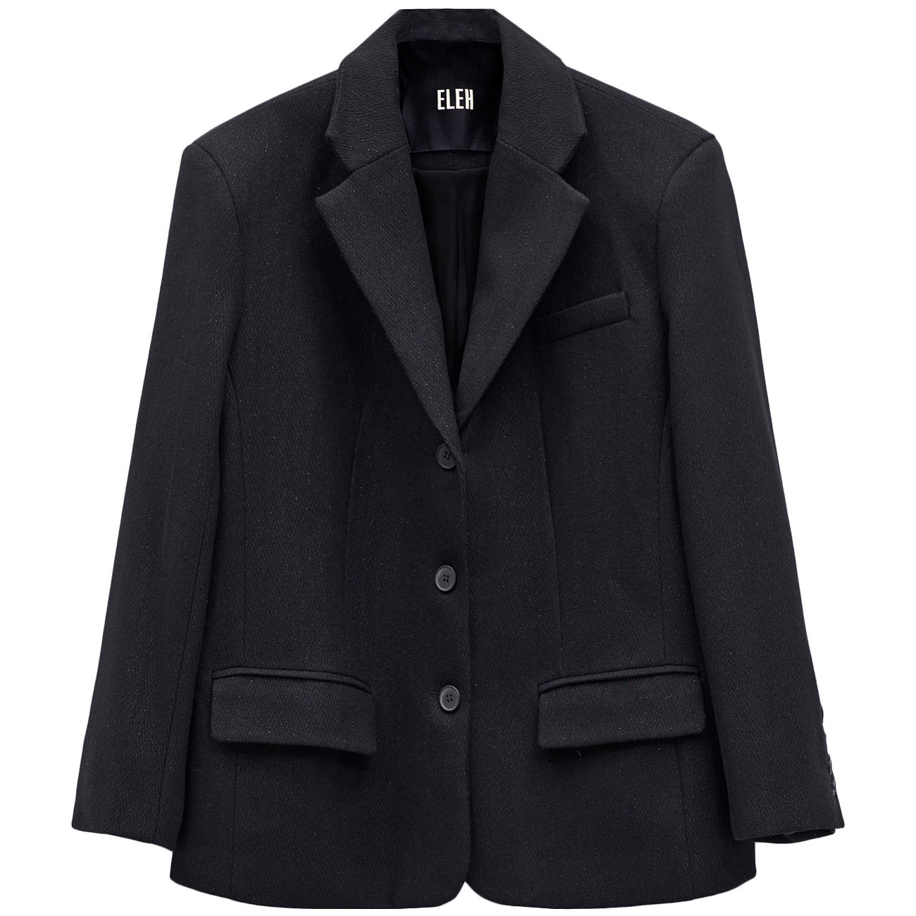 The Eleh Lurex Blazer masterfully blends traditional tailoring with a touch of contemporary glamour. The black fabric, interwoven with delicate Lurex fibers, releases a luminous sheen that enhances every movement. The relaxed yet impeccably structured silhouette exudes natural elegance, perfect from day to night. Every detail exudes measured and deliberate sophistication. A signature piece that embodies Eleh's sophisticated and distinctive essence.