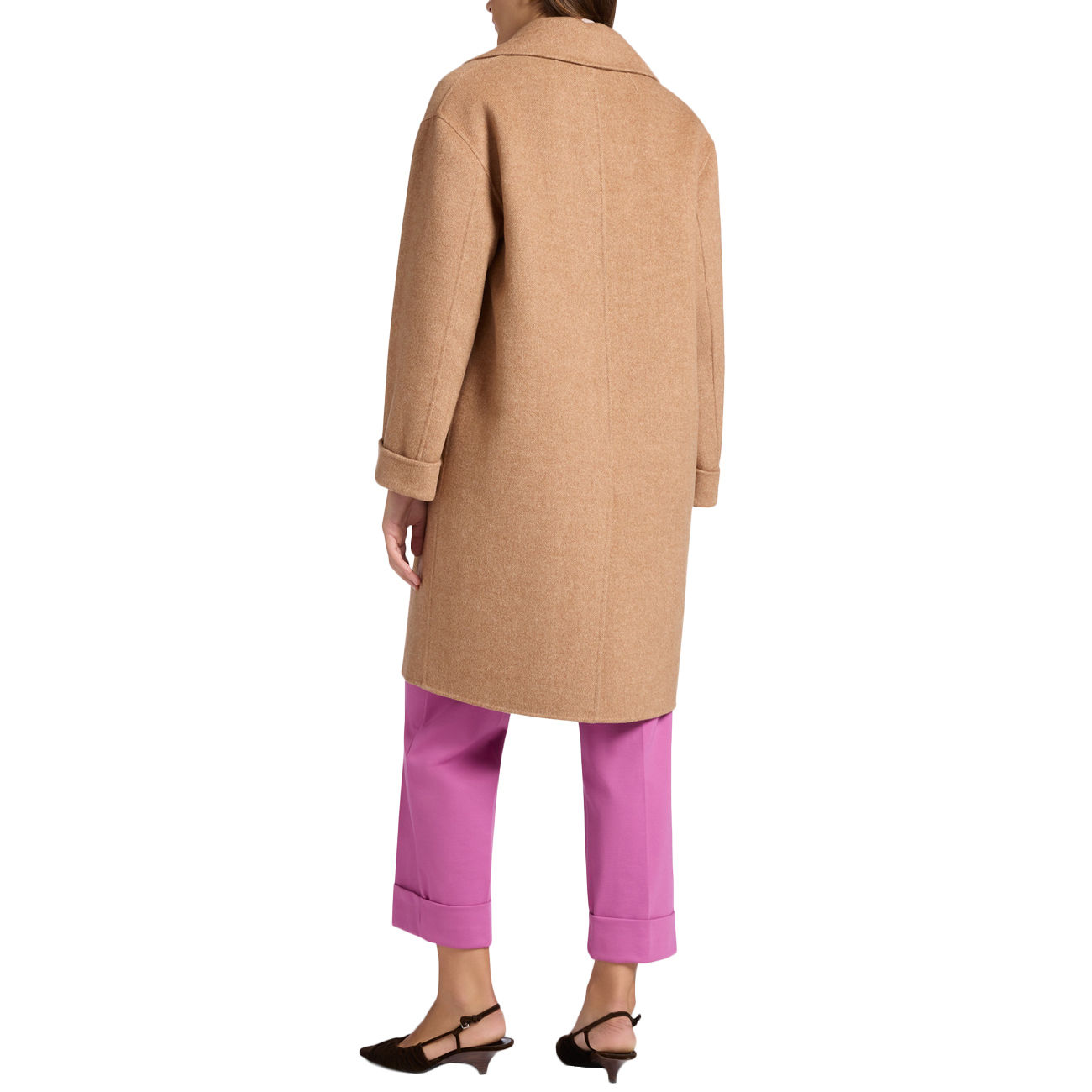 Enveloping and sophisticated, this double-breasted midi coat by Elena Mirò is crafted from fine pure wool, synonymous with elegance and quality. The clean lines are enhanced by a striking lapel collar, which flatters the figure with refined ease. The long sleeves and welt pockets at the sides combine style and functionality, while the button closure completes the garment with a classic touch. Unlined for natural lightness, it is the epitome of timeless elegance, perfect for gracefully accompanying the coldest days.