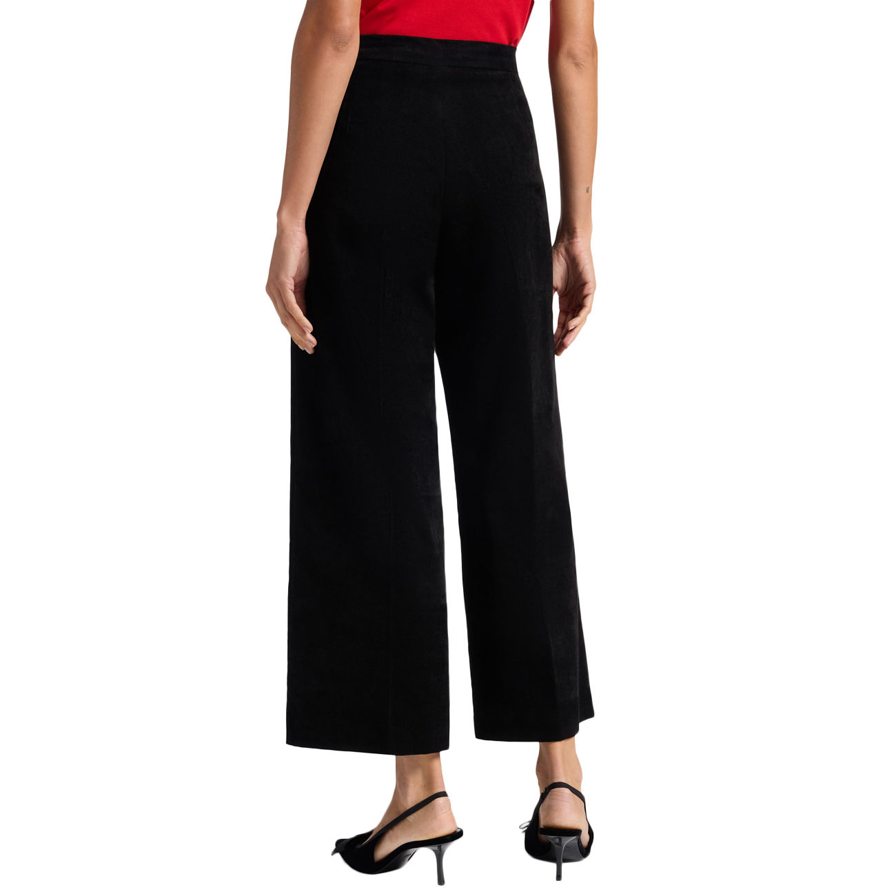 Crafted from fine cotton and viscose velvet, these Elena Mirò trousers embody refined and timeless elegance. The straight, wide leg lends fluidity to movement, maintaining a flawless silhouette. The slant pockets and front zip and button closure highlight the garment's meticulous craftsmanship. The pressed crease emphasizes the classic and feminine allure, making this model ideal for completing the season's most sophisticated looks with sophisticated style.