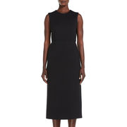 Sleeveless dress made of light and summer cotton. Features fit and flare line, V-neck front and back and pockets. Detail knot on the shoulders, closure with invisible zip on the back and finally flounces on the bottom.