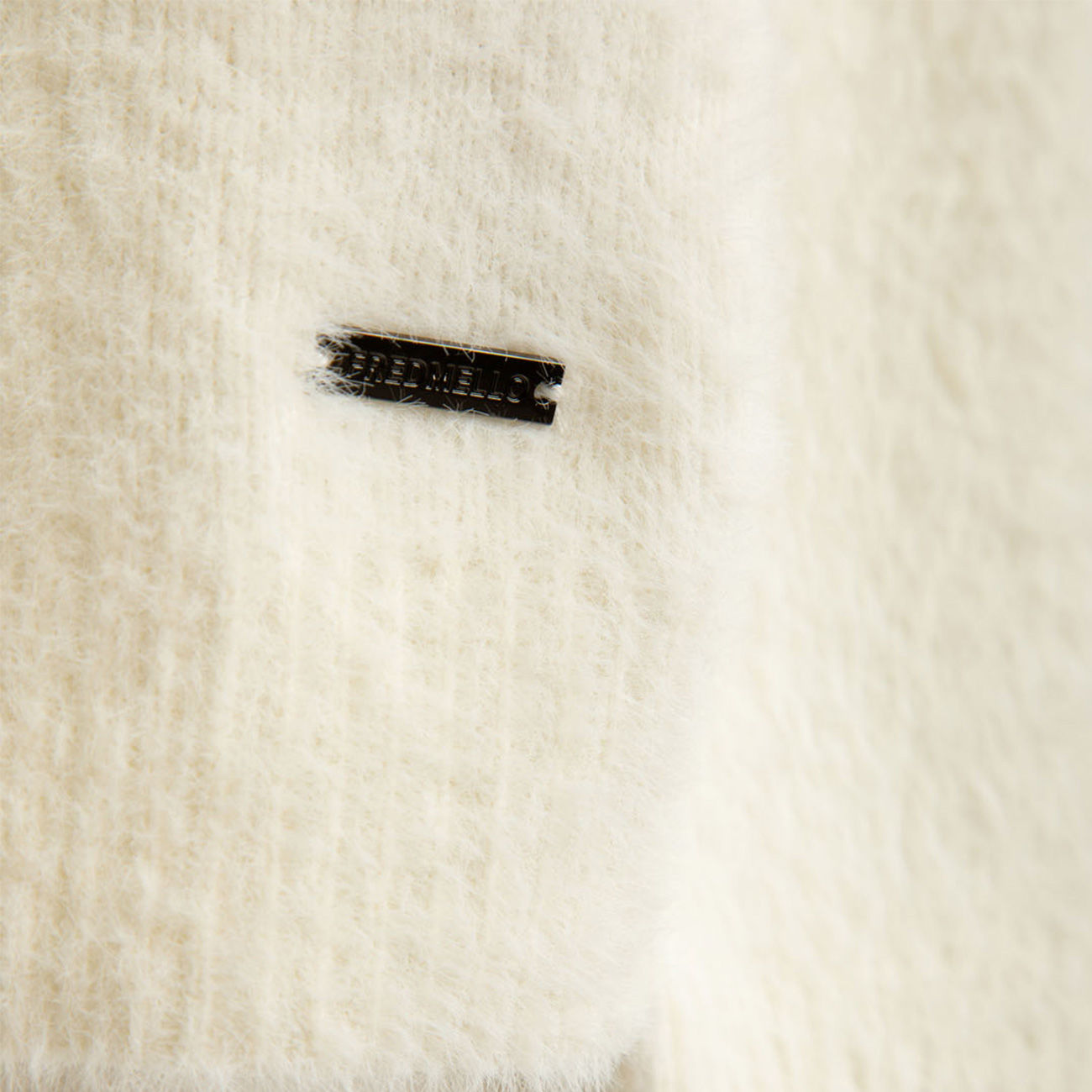 Enveloping and sophisticated, the Fred Mello crewneck sweater embodies everyday elegance with refined details and uncompromising comfort. The ultra-soft, furry texture, in a luminous white, gives the piece a vibrant glow and a discreet yet assertive presence. Designed for the colder seasons, it's perfect for stylishly completing your fall and winter looks. The small, discreet yet precious metallic logo conveys the brand's refined identity. This essential piece combines simplicity and personality with authentic contemporary savoir-faire.
