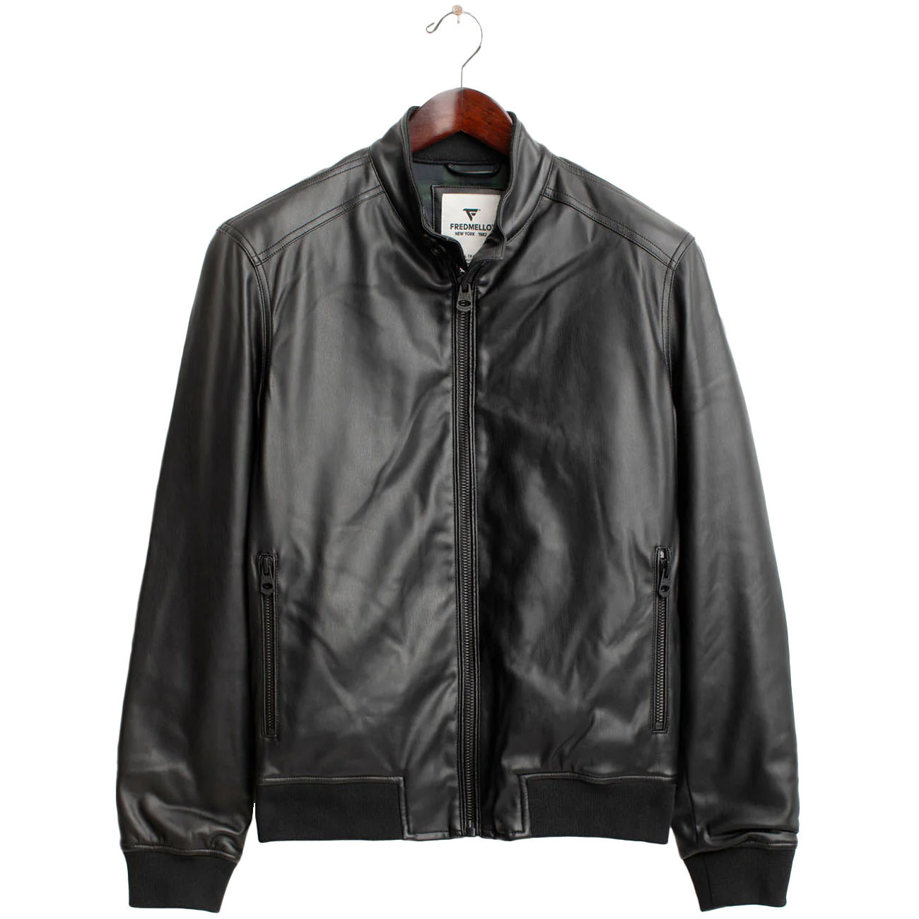 A jacket with a bold, contemporary character, crafted from soft faux leather that combines style and practicality. The checkered lining adds a touch of personality and highlights the attention to detail that has always been a Fred Mello hallmark. The textured two-button collar and front zip with a personalized metal puller define a refined, modern aesthetic. Zippered pockets, a ribbed inner collar, cuffs, and hem complete this versatile piece, perfect for adding a touch of urban elegance to any look.