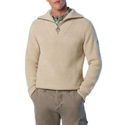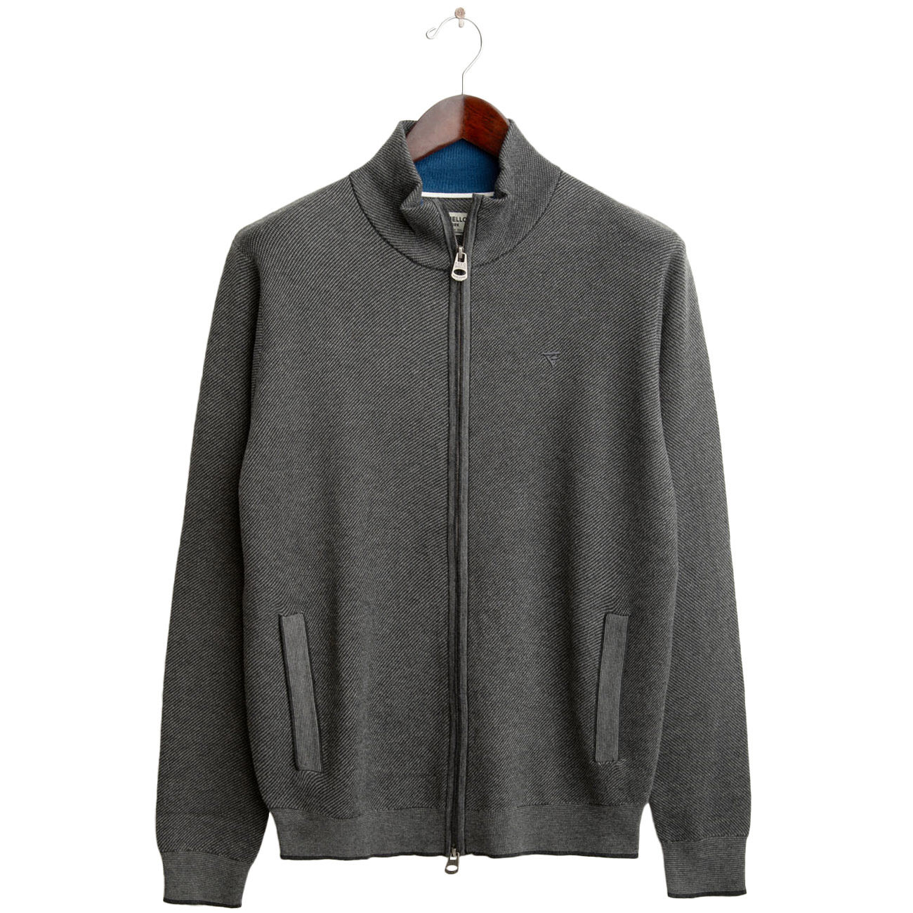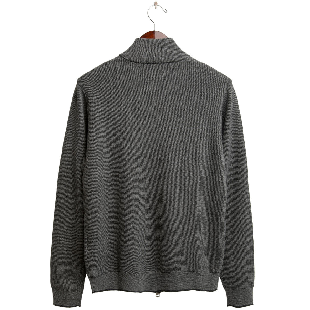 This full-zip turtleneck sweater, crafted from a refined cotton and wool blend, combines comfort with a contemporary sporty style. The two-tone diagonal jacquard weave and contrasting details lend personality and character to the piece. The embroidered logo on the chest, the two-way zip with a branded metal puller, and the contrasting placket enhance the sartorial elegance of the details. The interior design is completed by the ribbed collar, cuffs, hem, and welt pockets with contrasting stripes for an impeccable fit.