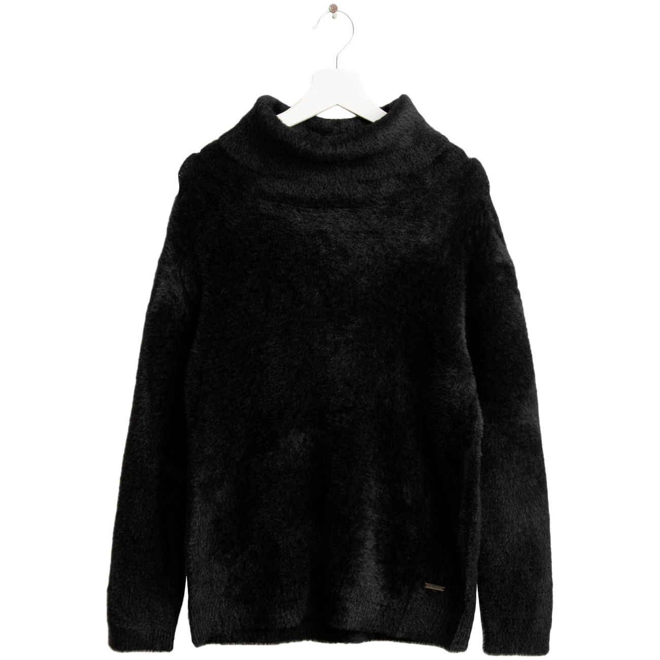 Envelop yourself in the warmth and softness of this turtleneck sweater, crafted from premium fur-effect yarn. The long-sleeved design elegantly accentuates the figure, while ribbed cuffs and hem ensure a perfect fit. The personalized metal plaque adds a distinctive and refined touch, discreetly adding a touch of luxury. A perfect balance between comfort and sophisticated style, ideal for colder days. A garment with a contemporary allure, designed for those who love refined and precious details.
