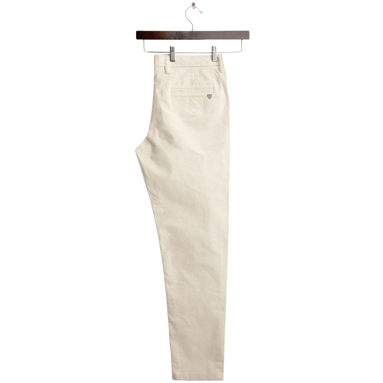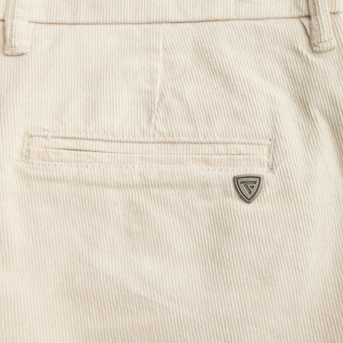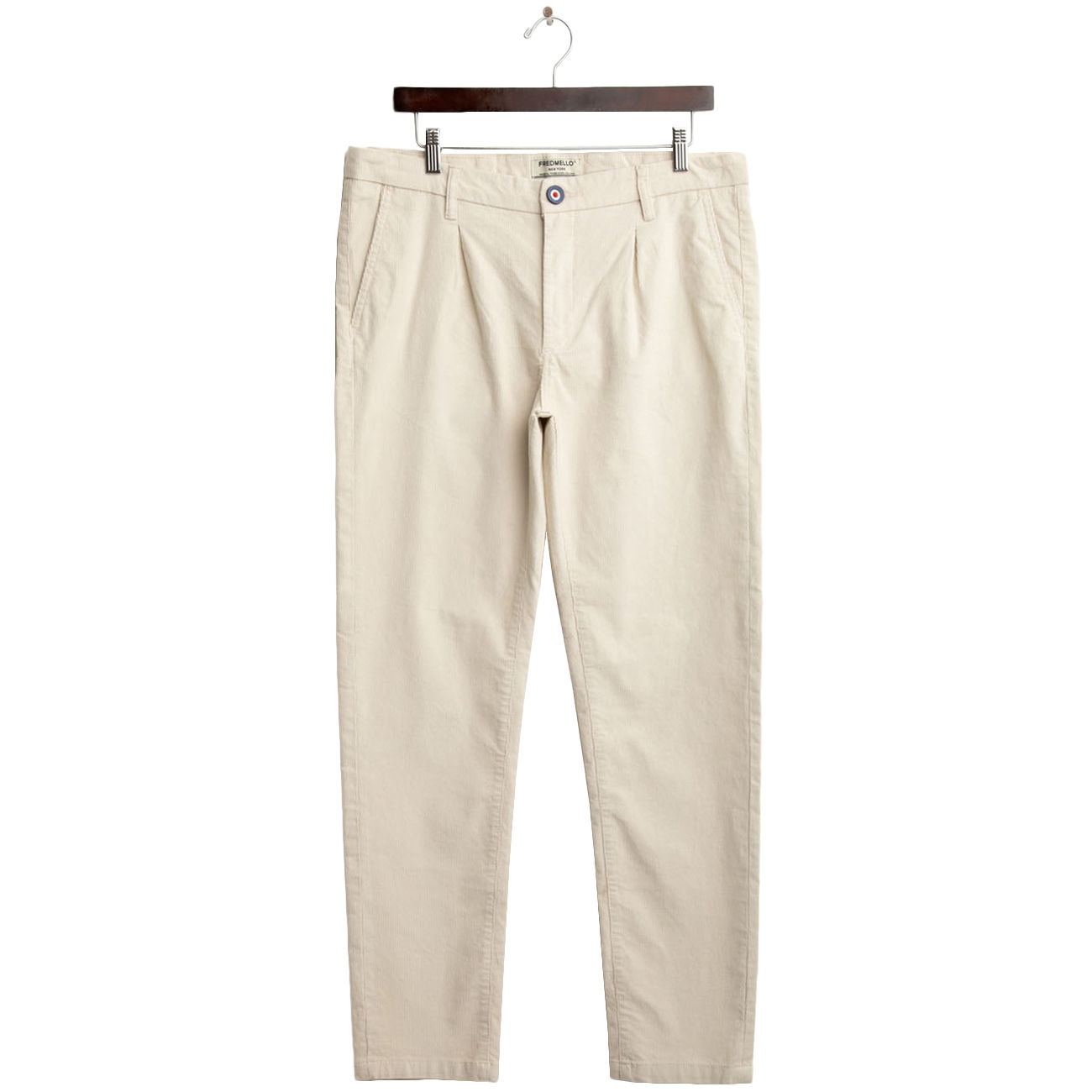 The Fred Mello trousers in fine corduroy celebrate a casual sophistication, perfect for those seeking everyday elegance without sacrificing comfort. The bright and versatile ivory hue makes them an essential piece, easily paired for any occasion. The modern fit, enhanced by a delicate pleat at the front, creates a flawless and harmonious silhouette. The tone-on-tone logo button reflects the brand's meticulous tailoring and attention to detail. A garment that combines relaxed style and sophisticated materials, designed for men with refined taste.