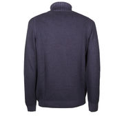 Navy blue turtleneck in wool and cotton with roll neck, tone-on-tone ribbed edges and embroidered logo in white on the left side.
