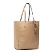 Handbag with double handles in soft embossed smooth leather. Internal compartment with flat zip pocket. Removable thin leather shoulder strap.