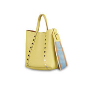 This shopping bag is perfect for an everyday look and is made of ribbed fabric, enriched with contrasting leather profiles. It is also equipped with leather handles and a convenient magnet closure. Contrasting lining detail and leather clutch bag in the same color as the finishes.