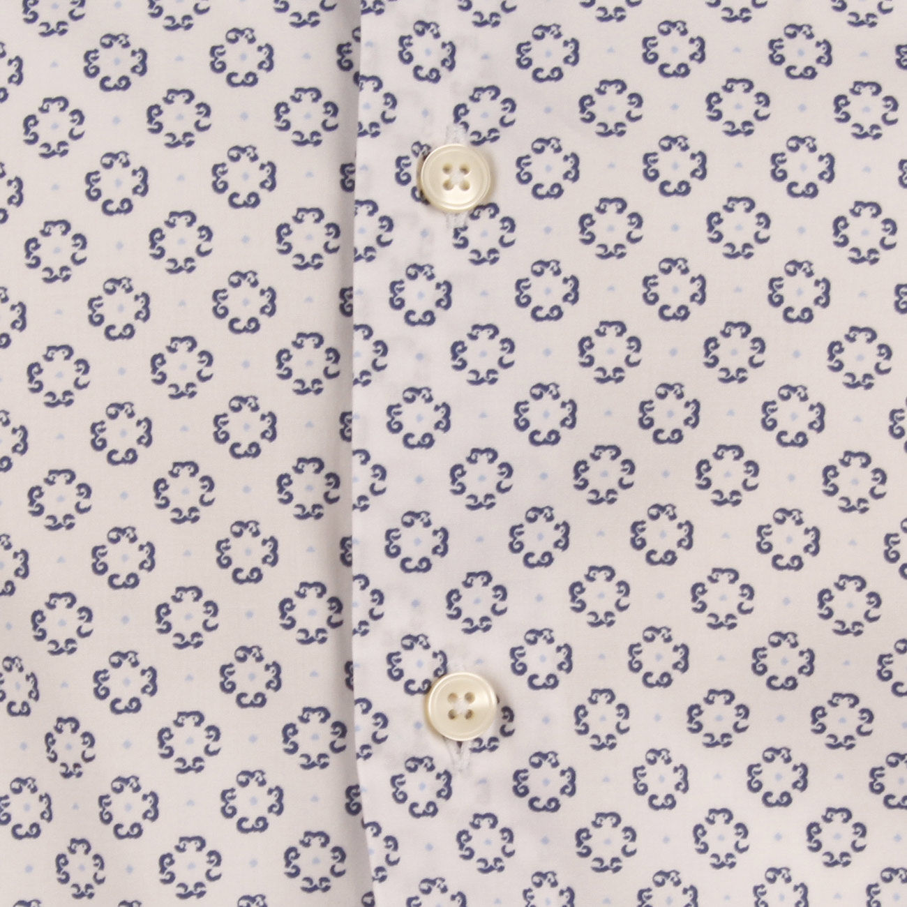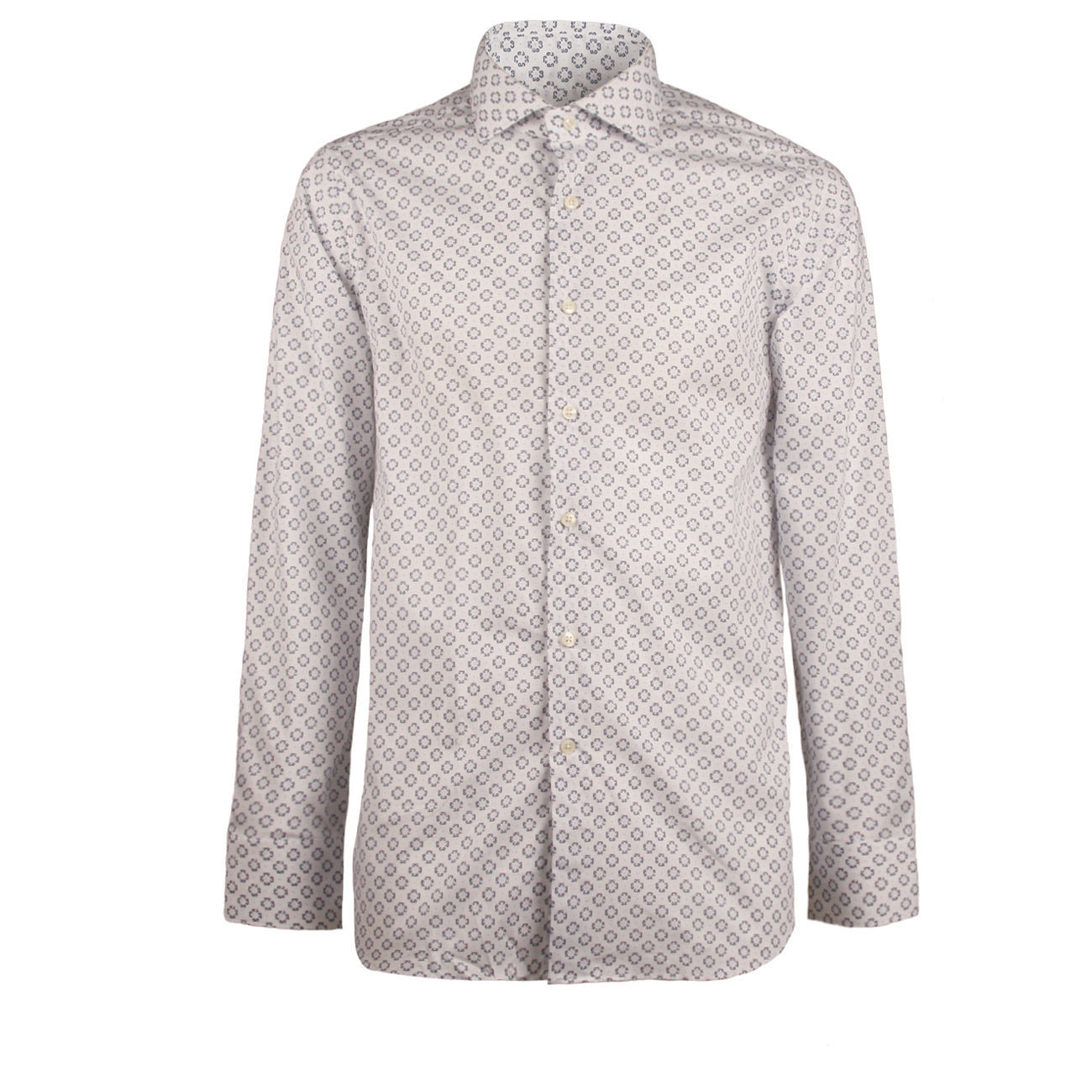 Shirt signed guglielminotti made with a patterned pattern. This straight-cut shirt features the classic buttoned cuffs, a French collar, side slits and a central closure with a row of exposed buttons.