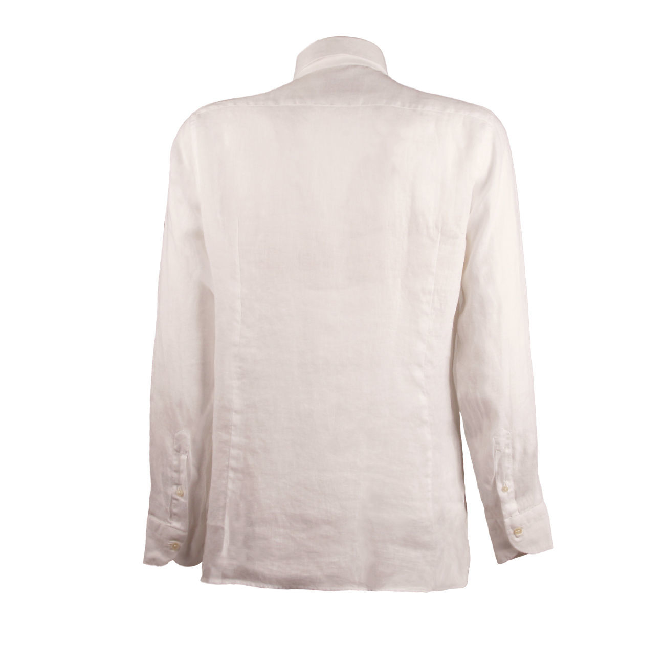 Shirt entirely made of linen, with long sleeves, buttoned cuffs, French collar and closure with central row of buttons tone on tone.