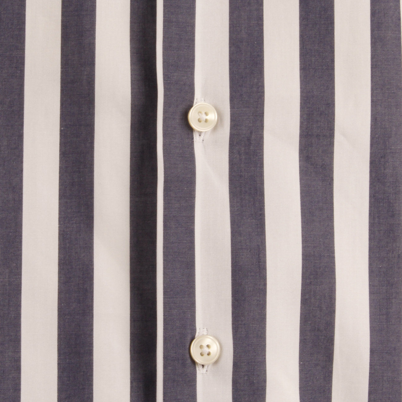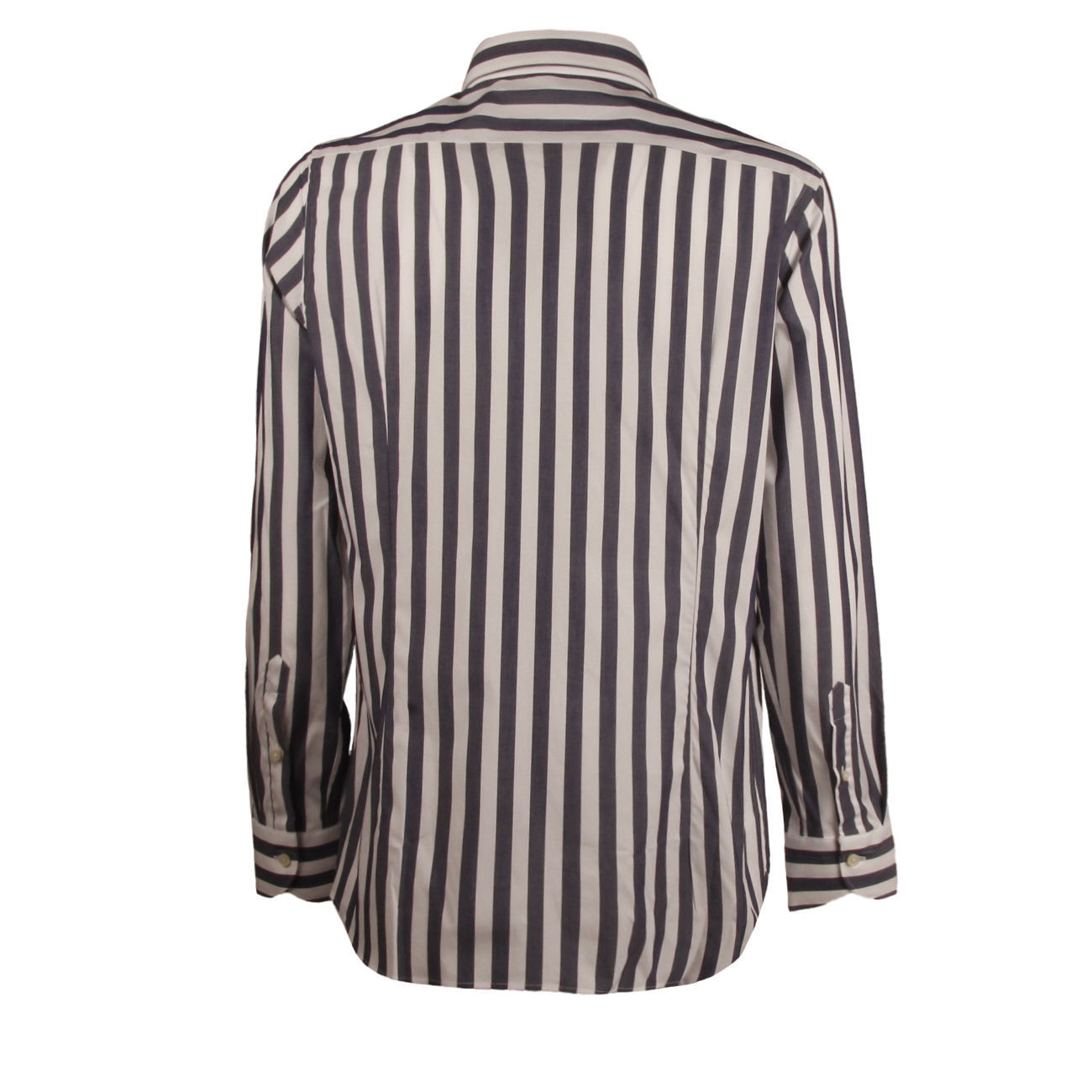 Shirt signed guglielminotti made of vertical stripes. This straight-cut shirt features the classic buttoned cuffs, a French collar, side slits and a central closure with a row of exposed buttons.