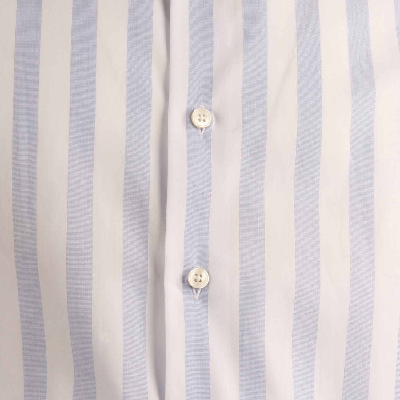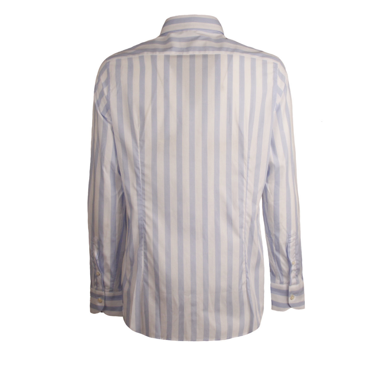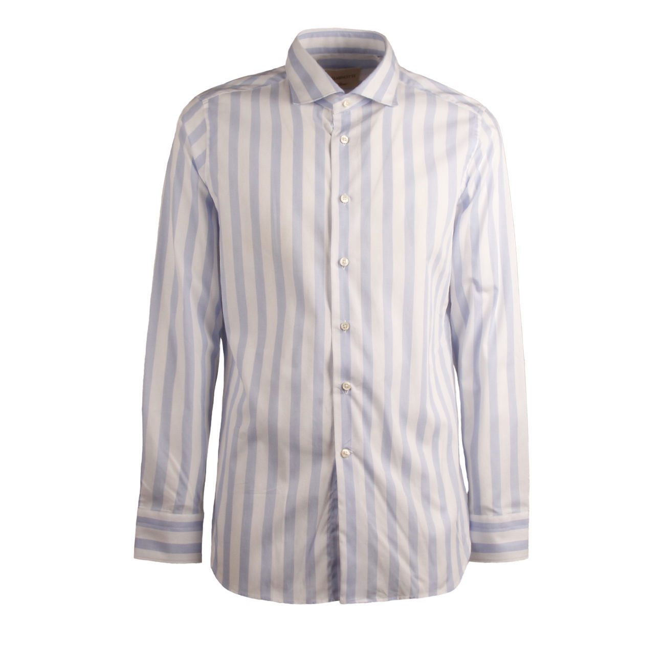 Shirt signed guglielminotti made of vertical stripes. This straight-cut shirt features the classic buttoned cuffs, a French collar, side slits and a central closure with a row of exposed buttons.