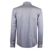 Regular shirt with french collar and all-over contrasting pattern. Closure with a row of central buttons and adjustable cuffs.