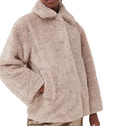 Relaxed fit coat in stretch jersey. Laser cutting and ultrasonic bonding techniques make the garment unique and elegant. High collar, long sleeves and side slits for maximum freedom of movement. The closure is covered with snap buttons. Detail welt pockets and slits on the sides.