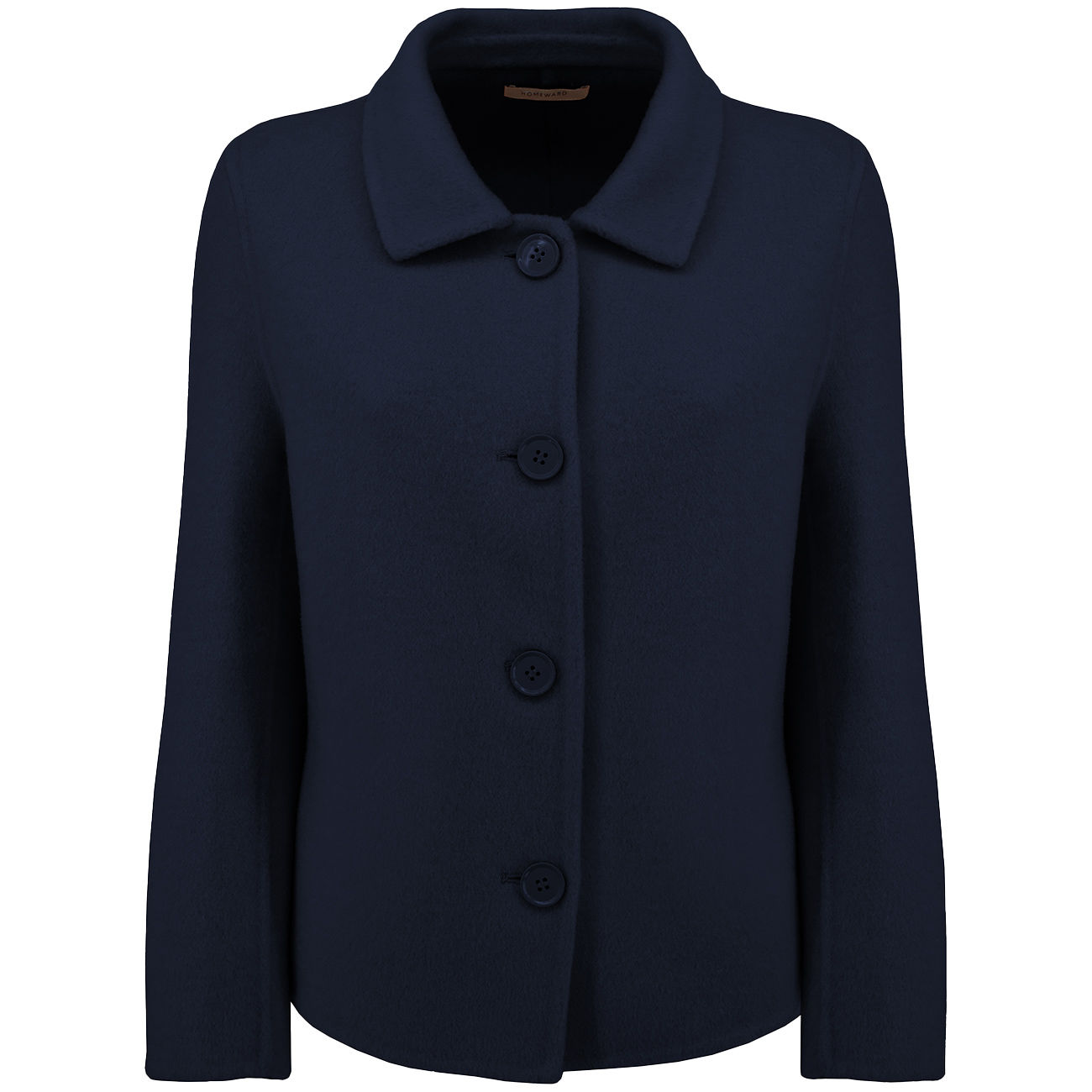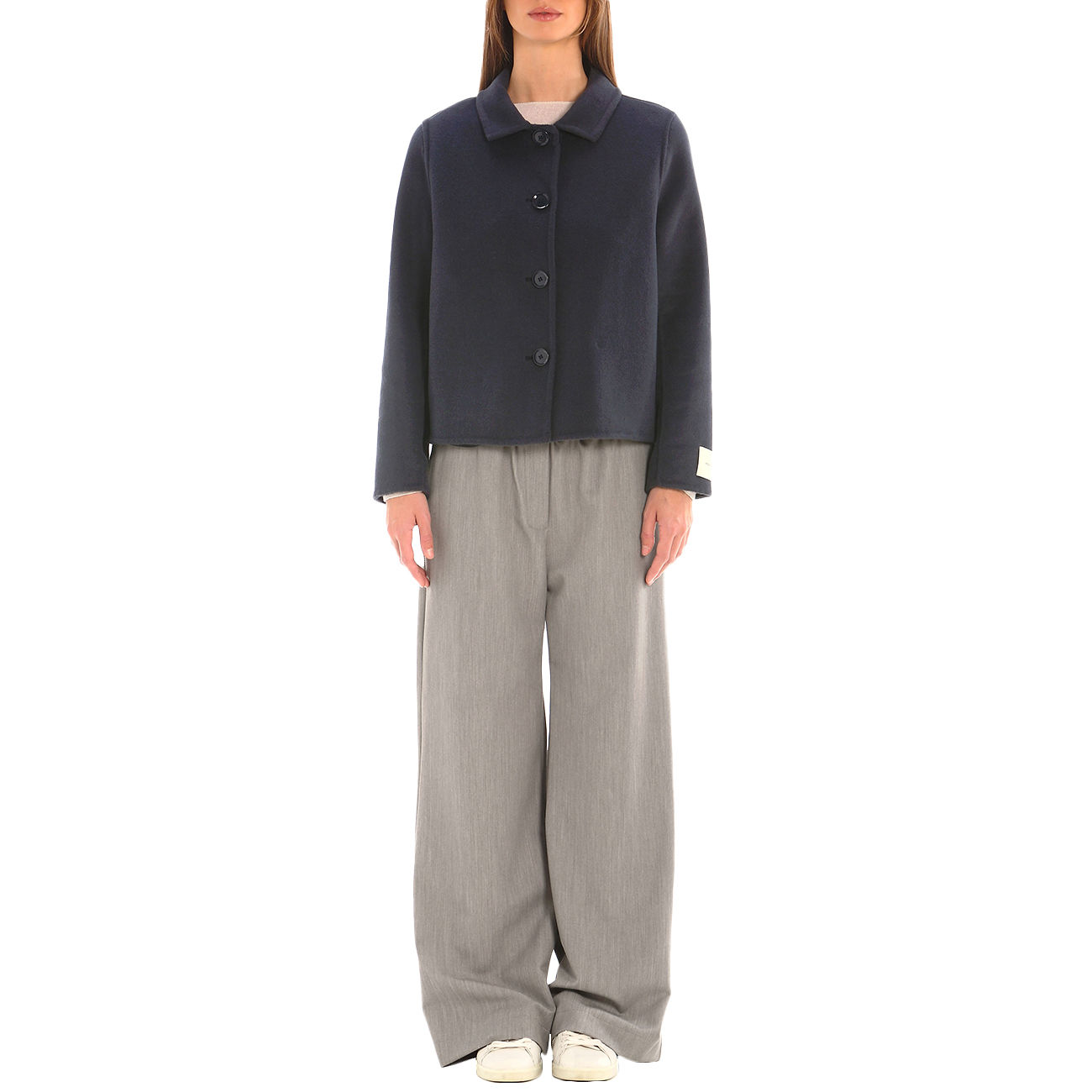 The Homeward Short Jacket celebrates minimalist elegance with refined simplicity. Crafted from fine wool, it features a short, boxy silhouette that combines modernity with sartorial precision. The classic collar and tone-on-tone buttons define clean, sophisticated lines. The deep, luminous navy blue adds character to any outfit. A versatile and timeless piece, ideal for effortlessly transitioning from work to evening events.