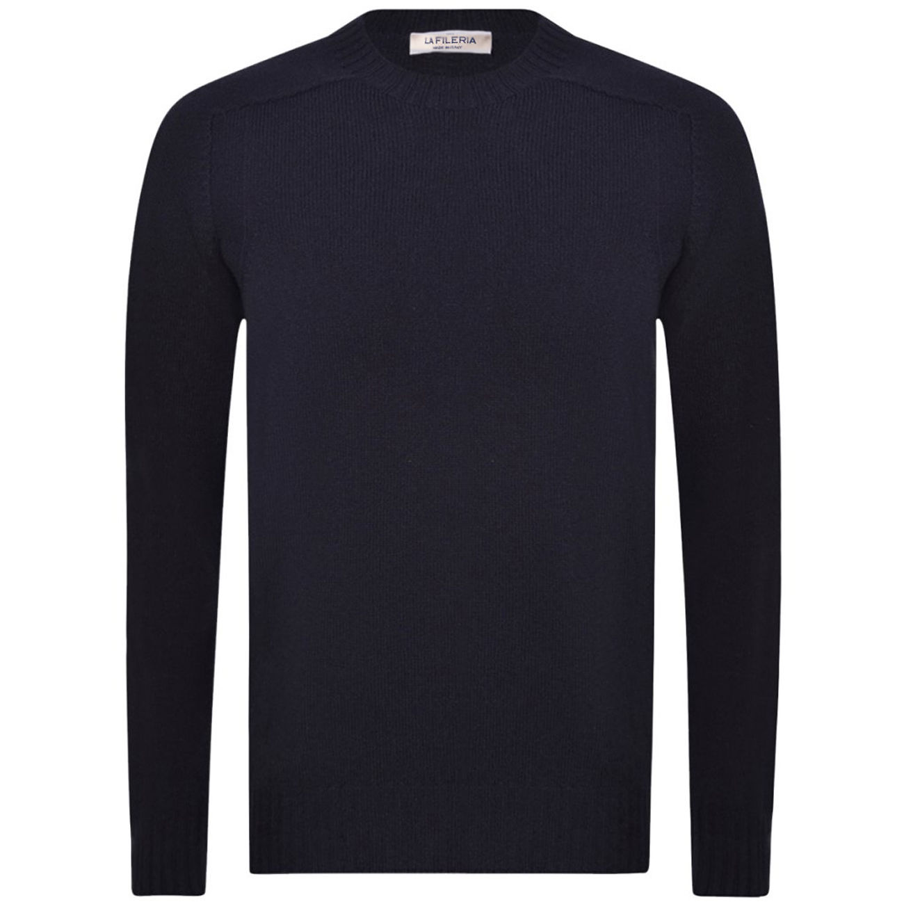 The La Fileria crewneck sweater is an icon of Italian craftsmanship and men's luxury. Crafted from pure wool, it envelops with superior softness and refined warmth, an essential for every gentleman's wardrobe. The understated design is enhanced by elegant ribbed detailing on the crewneck and shoulders, lending structure and a modern touch. The deep navy blue enhances the sweater's versatility, making it perfect for formal looks or casual-chic combinations. The quality of the materials and the meticulous tailoring make it a timeless piece.