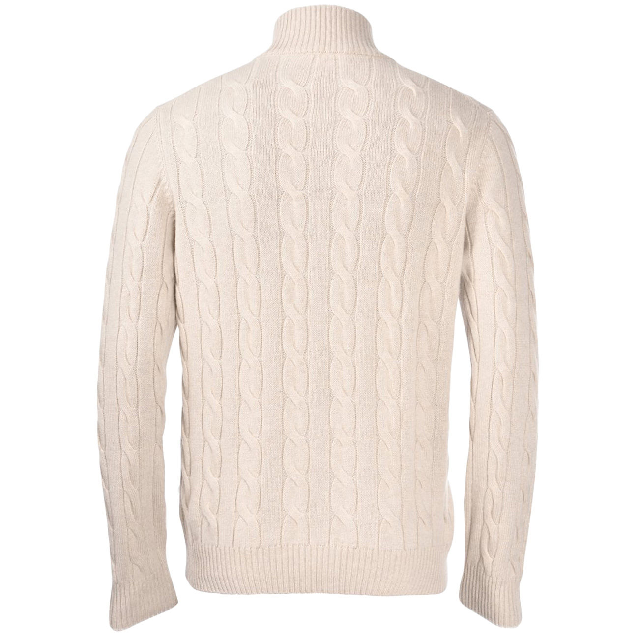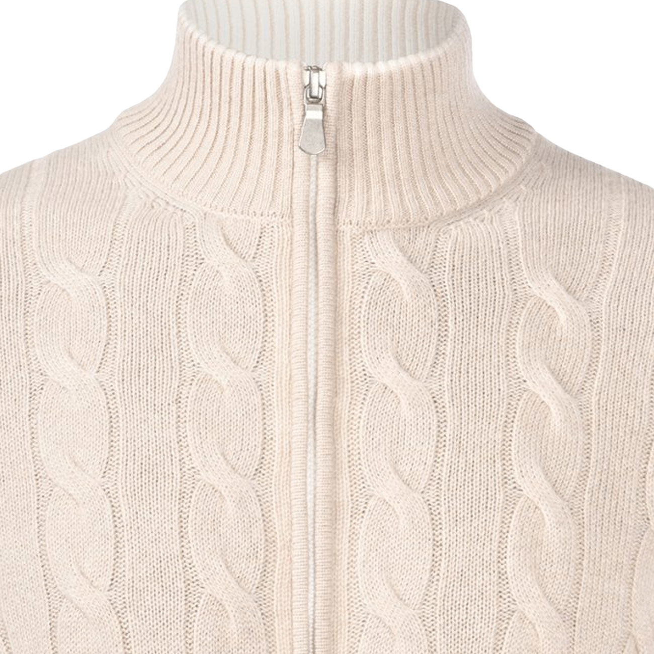 This full-zip sweater from La Fileria represents the excellence of men's knitwear, blending artisanal tradition with contemporary functionality. Crafted entirely from pure wool, it envelops you with comfortable warmth and unparalleled softness. The all-over cable knit adds a rich texture and sophisticated heritage elegance. The practical metal zipper enhances its versatility, allowing it to be worn as a lightweight layer or layered. The refined ecru tone adds brightness and understated elegance to the look. A true style statement, designed for those who love timeless elegance and sartorial quality.