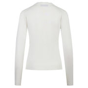 The Maida Mila Cardigan, crafted from the highest-quality wool yarn, offers enveloping softness and a lightweight feel, ideal for chic layering. The classic V-neck silhouette and tone-on-tone buttons emphasize its versatility, making it a must-have for understated everyday luxury. The pristine white color lends an aura of purity and sophistication, pairing gracefully with any palette. A stylish all-rounder, perfect as a lightweight outerwear piece or as a refined buttoned-up sweater.