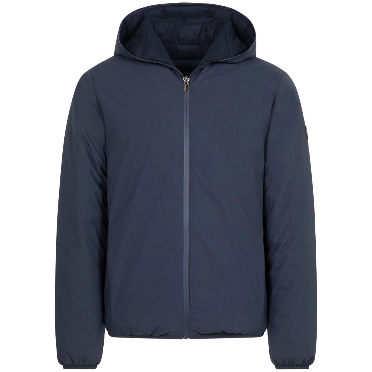This reversible hooded bomber jacket celebrates urban elegance with refined versatility. A deep navy blue contrasts with a contrasting interior, offering dual sophisticated style in one piece. The lightweight construction, enhanced by subtle padding on the hood, ensures comfort without compromising the sleek silhouette. Zips and discreet details enhance the minimalist aesthetic, lending a contemporary and sophisticated touch. An essential piece, designed to tackle every change of season with unparalleled dynamism and class.