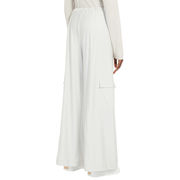 Trousers with wide leg in soft pure cotton poplin. The belt loops on the waist and pleats on the front, French pockets on the sides and the long belt combined with metal eyelets make the garment refined and versatile. Closure with covered zip and hook.