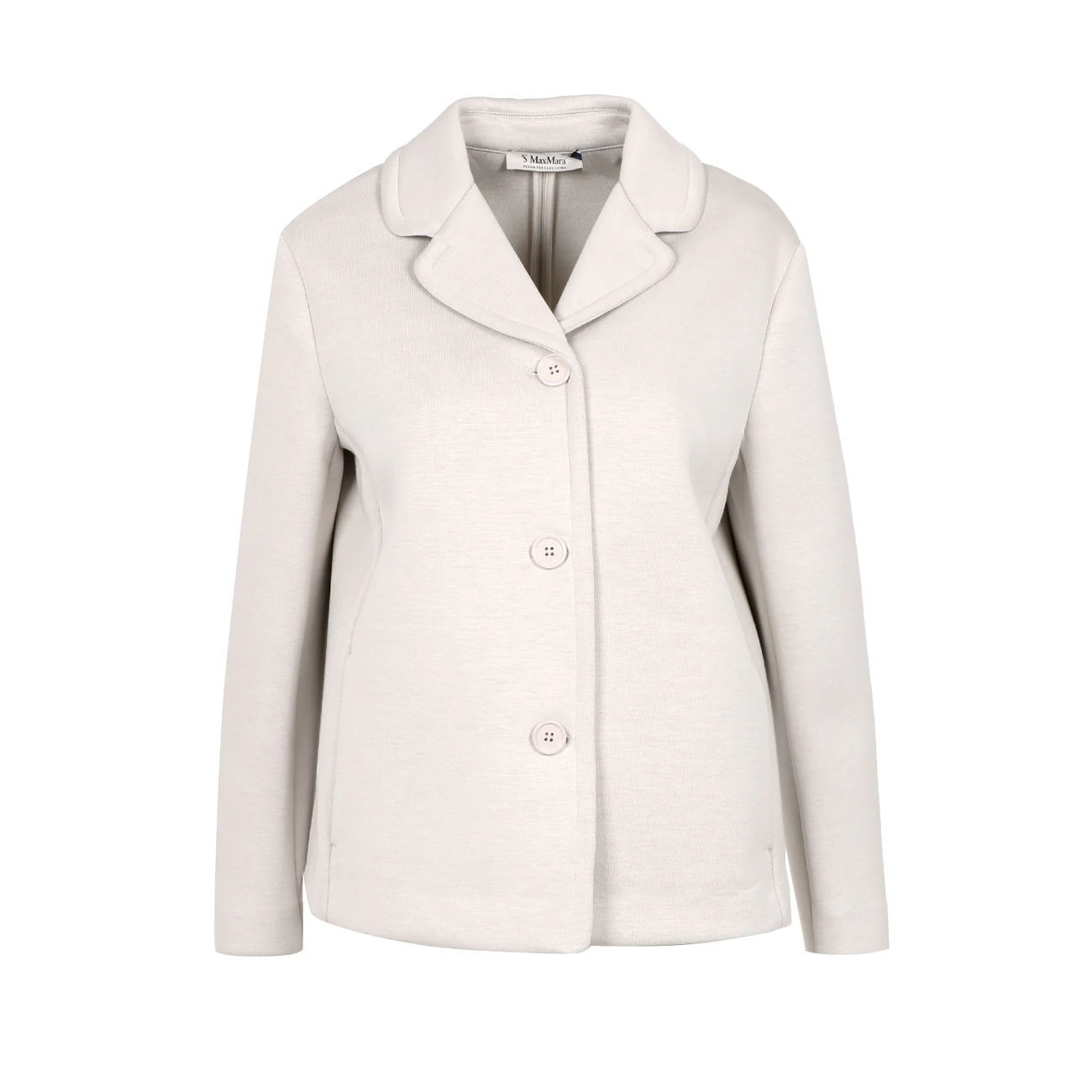 The Elio jacket from `S Max Mara is a great option for between seasons. This chic model is made of stretch jersey with a simple silhouette, front buttoning and an elegant collar with side slit pockets