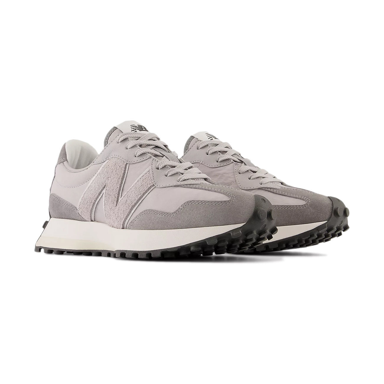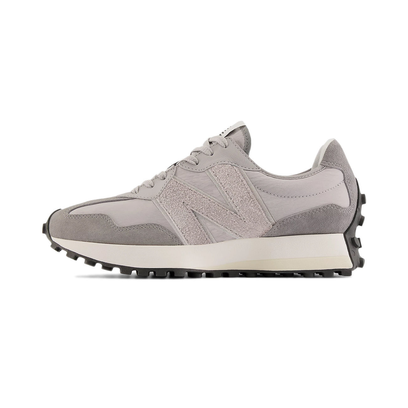 Thanks to the 327, the 70s became a theater of innovation, an extraordinary reinterpretation of design elements in a contemporary key. With an angled version of the popular wedge silhouette, the oversized asymmetrical `N` brand and a trail-inspired grooved outsole, the 327 inherit the legacy of new racing balance.