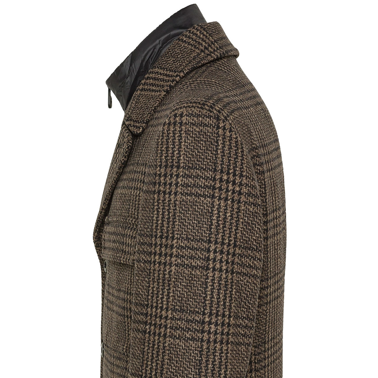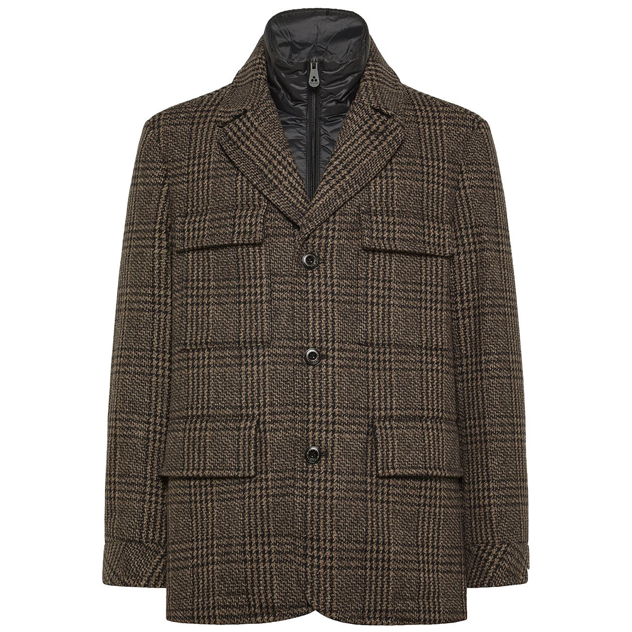 Elegant and contemporary, this checked wool and acrylic blend blazer combines a streamlined tailored look with a soft, comfortable feel. The removable inner bib, with synthetic padding and a high collar, offers additional protection on colder days without compromising style. The four front flap pockets and three-button closure underscore the attention to detail and sartorial precision. Part of the Peuterey Première line, this piece blends formal tradition and contemporary innovation. A versatile and distinctive blazer, perfect for building a refined and timeless wardrobe.