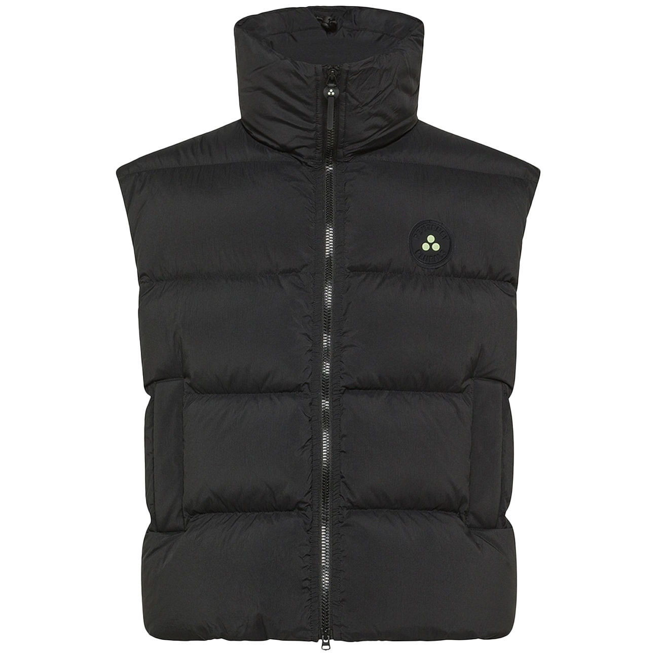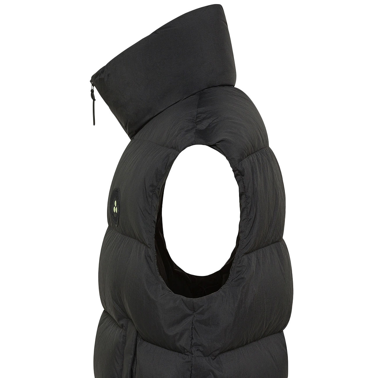 A bold interpretation of the classic padded vest, the result of the collaboration between Peuterey Plurals and Tony Effe. Crafted from ultralight nylon with a matte finish, it weighs just 40 grams and stands out for its oversized volume and maxi quilting with an urban attitude. The certified natural down padding ensures warmth and lightness, while the PFC-free water-repellent treatment protects while respecting the environment. The contrasting two-way zip and side welt pockets define a modern and bold silhouette. Completed with a round logo patch on the chest, this genderless piece has a strong visual impact. A symbol of contemporary style that celebrates the intersection of streetwear and cutting-edge experimentation in the Peuterey Plurals x Tony Effe collaboration.