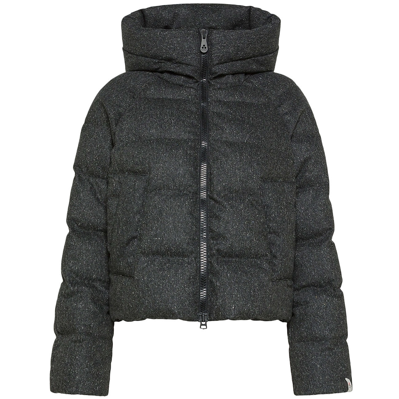Quilted down jacket in fine wool twill with a herringbone pattern, embellished with acrylic, polyester, and silk yarns that give the fabric a soft feel and refined elegance. The certified natural down padding ensures a perfect balance between warmth and lightness. The enveloping hood and black two-way zipper add a contemporary touch, while the side welt pockets complete the design with understated elegance. Part of the Peuterey Première line, this model embodies the harmonious blend of innovation and tradition. A short and distinctive piece, designed for a bold and sophisticated femininity.