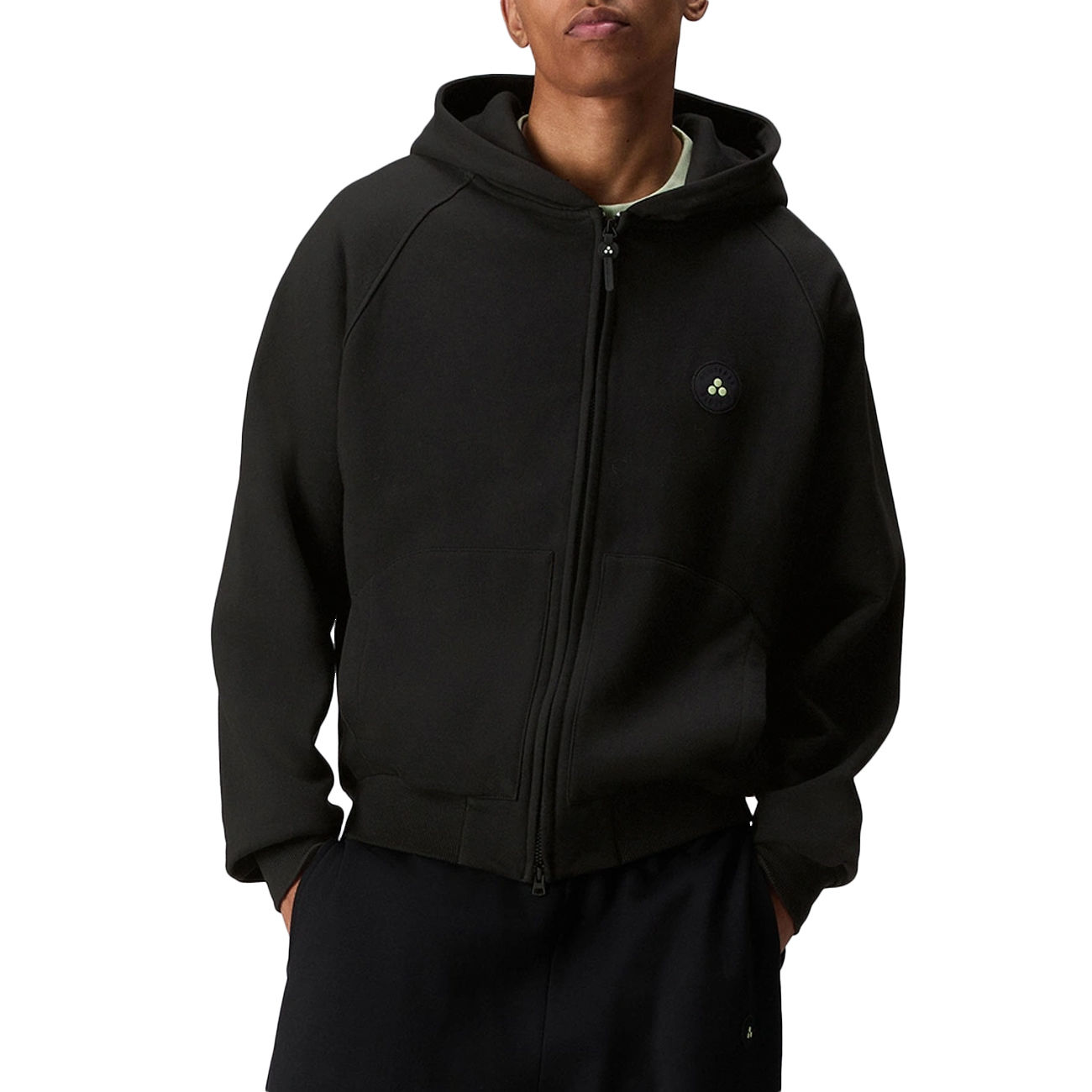 Essential yet bold, this zip-up sweatshirt from the Peuterey Plurals FW25 capsule collection, the result of a collaboration with Tony Effe, combines comfort and street attitude in a clean, versatile design. Featuring a hood, center zip, elastic cuffs and hem, and side patch pockets, it stands out for its iconic round logo patch on the chest. The genderless fit and minimalist style make it an easy-to-match everyday piece suitable for any occasion.