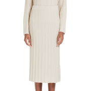 High waist midi skirt characterized by slit on the front. Features zip and button closure and faux leather effect. A super glam garment perfect to complete a cool outfit!