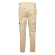 Cargo trousers from the wide line made of cotton gabardine dyed garment. Features the full waist belt loops and belt belt matched in ribbon with metal finalini. It has a straight leg with flap pockets on the sides, side pockets with bellows and flap at the bottom and closure with zip and button.