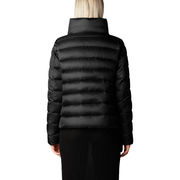 Bomber jacket combining PLUMTECH® padding with a laminated stretch nylon fabric. It has a minimalist line, adjustable with a drawstring at the bottom, with low pockets with invisible zips and an inside zip pocket. Lycra inner cuffs provide extra comfort, while distinctive details include the logo on the hood, customised zip puller and embossed lettering on the sleeve. Made of matte ladderproof 3-layer fabric with a breathable polyurethane membrane, it is stretchy and comfortable, guaranteeing waterproofing and wind protection.