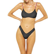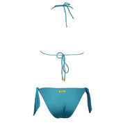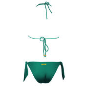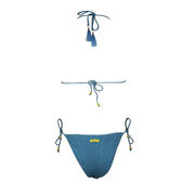 This lurex bikini is designed for those who love to shine in style under the sun. The simple but always current triangle top adapts perfectly to the shapes thanks to the possibility of adjusting the fit, while the gathering adds an extra touch of femininity. The briefs, with thin and adjustable laces, recall the same gathered detail, enhancing the curves with delicacy and sensuality. The slightly shiny lurex fabric reflects the light giving a luminous and sophisticated effect, perfect for days at the beach or at the pool.