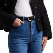 Women's braided elastic belt, made of rayon with details in fine vegetable leather. The waistband has no holes, as its elastic structure allows it to be easily adjusted for a perfect fit, adapting to different comfort and style needs. Perfect for embellishing elegant looks, but also casual!